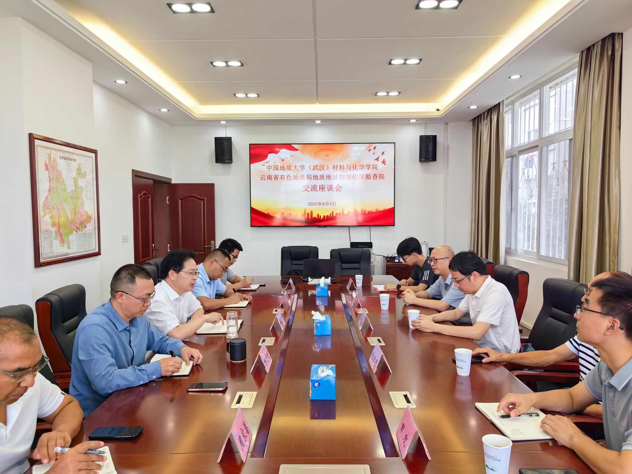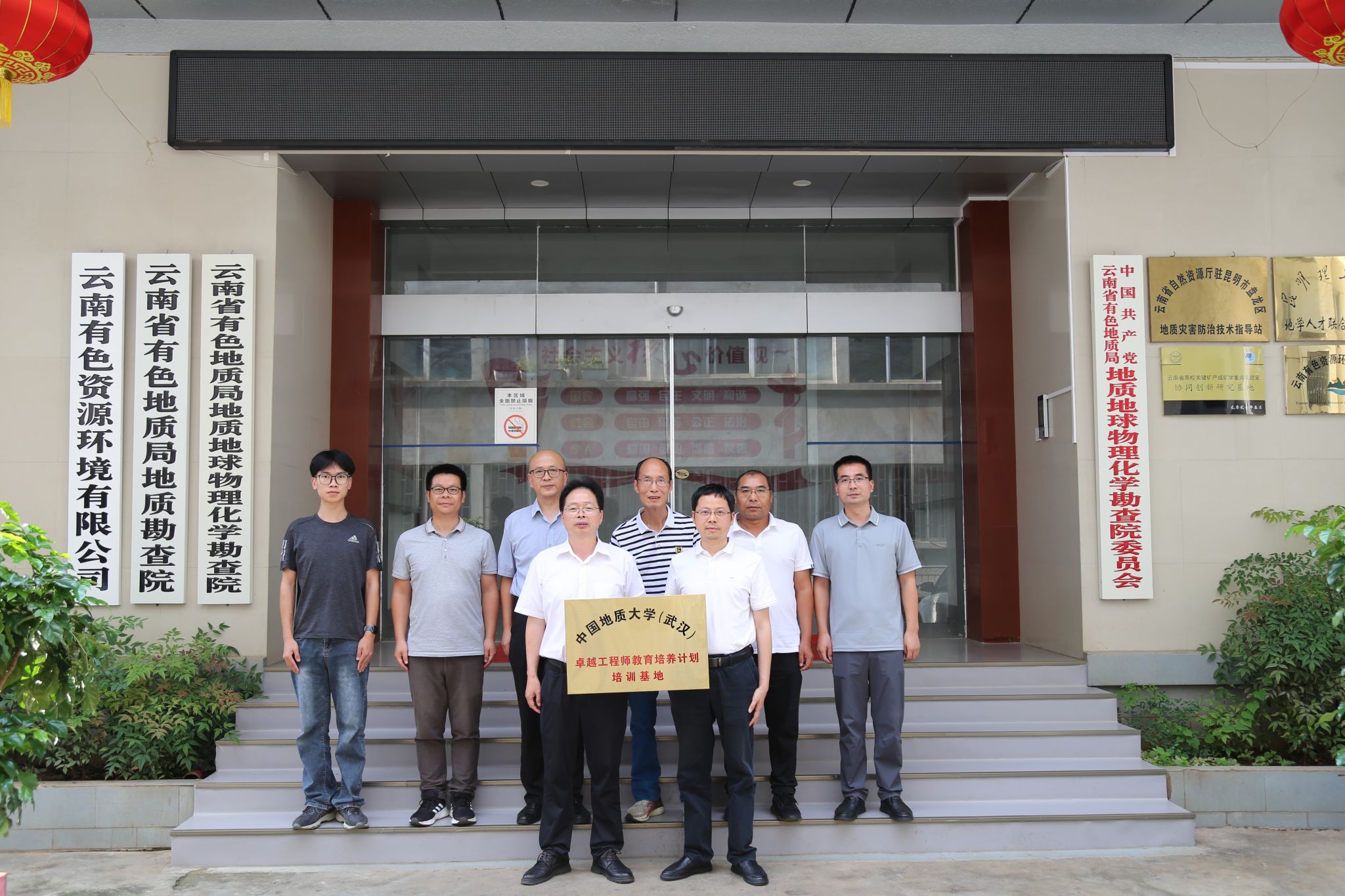 为深化产教融合,拓展实践育人平台,8月4日,学院院长胡兆初、教师代表鲍征宇、鲁立强、田欢和学生代表黄旭升赴云南省有色地质局地质地球物理化学勘查院(以下简称“物勘院”)开展专题调研交流,并举行共建“本科卓越工程师培养计划培训基地”挂牌仪式。