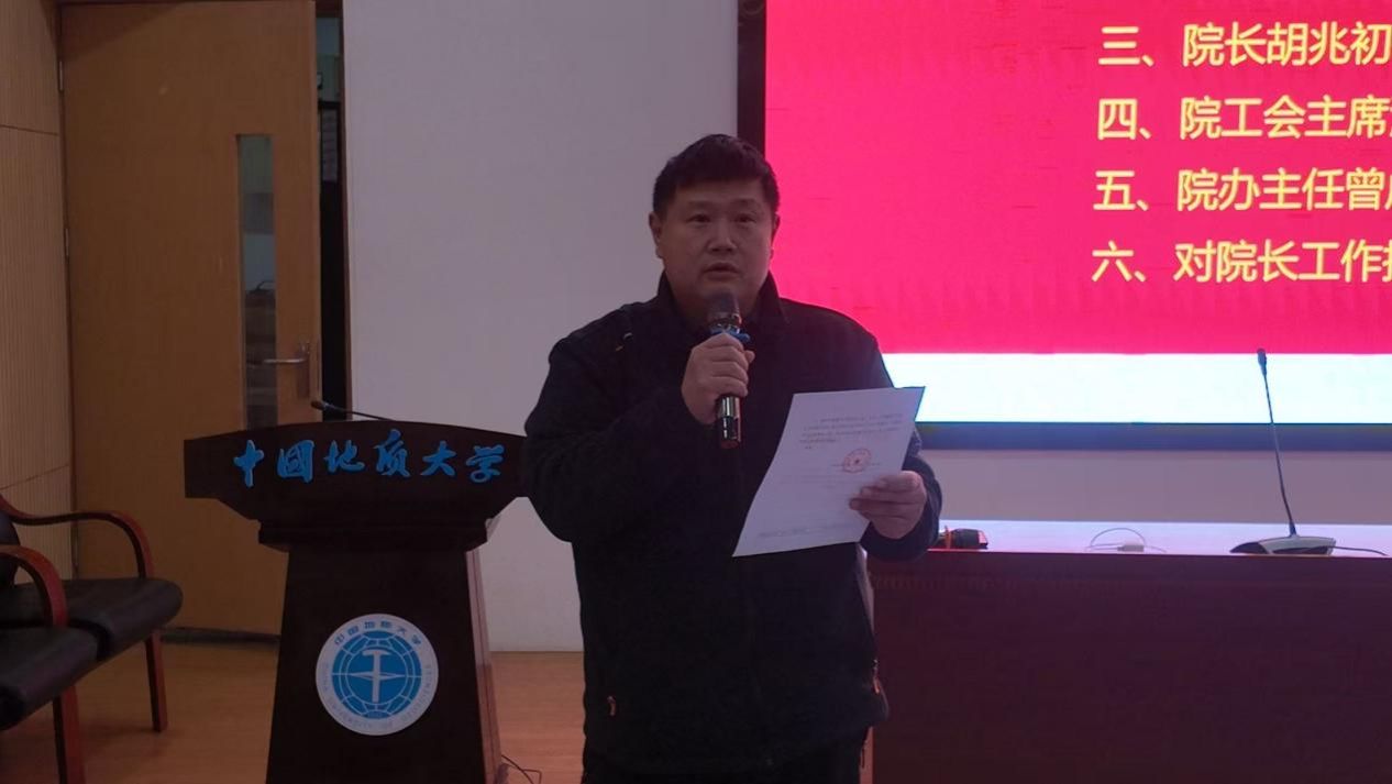 学院分工会主席沈毅宣读学校工会《关于同意召开国产探花第四届教职工大会第二次会议暨第四届工会会员大会第二次会议的批复》,并传达学校工会对国产探花教职工的殷切希望。